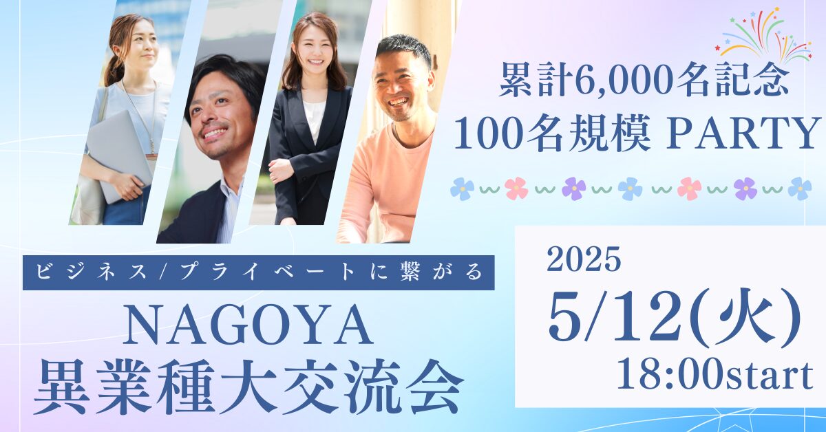 名古屋の異業種交流会パーティー。毎月30名~50名規模の異業種交流会を開催しております。ビジネス / プライベートどちらにも。